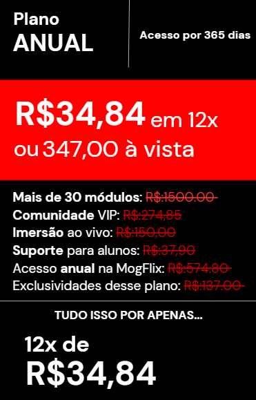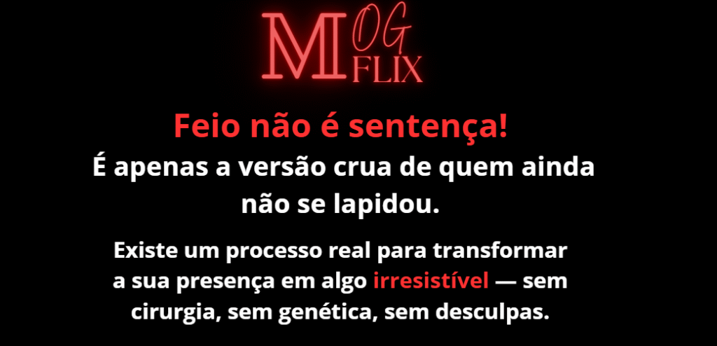 Com um método comprovado, prático e estruturado, a MogFlix oferece módulos e planos de ação fáceis de aplicar na sua rotina, desenhados para tirar você de um estado de ruminação, insegurança e pensamentos negativos. Nós vamos te ensinar a retomar o controle da sua vida, elevar sua autoestima e se tornar a pessoa mais bonita, saudável e atraente que você pode ser.